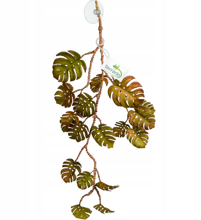 Biljka za terarij u obliku viseće monstere dužine 70 cm savršen je dekorativni dodatak za stvaranje tropske atmosfere u vašem terariju. Ova realistična i fleksibilna umjetna biljka omogućuje jednostavno oblikovanje grana prema vlastitim željama, čime se savršeno prilagođava svakom rasporedu i vrsti terarija. Zahvaljujući prirodnom izgledu i sigurnim materijalima, biljka za terarij ne samo da obogaćuje prostor, već i pruža funkcionalne prednosti za vaše ljubimce.