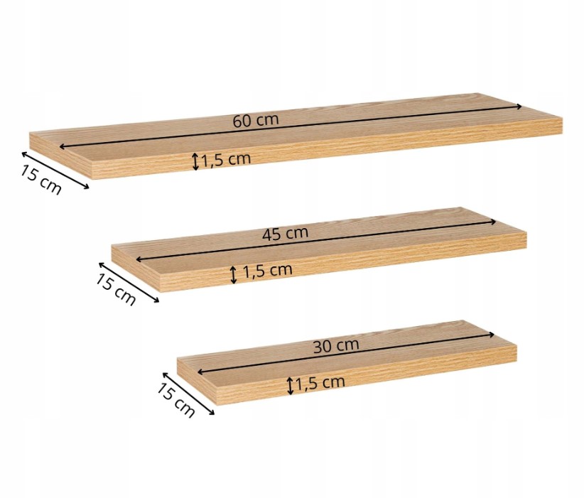 Ovaj set sadrži tri različite police – malu, srednju i veliku – koje se savršeno nadopunjuju i omogućuju kreativno uređenje zida. Bilo da ih postavite u dnevni boravak, kuhinju, spavaću sobu, hodnik ili ured, svaka Daska za Policu postaje praktična i dekorativna površina za knjige, biljke, fotografije ili dekoracije.