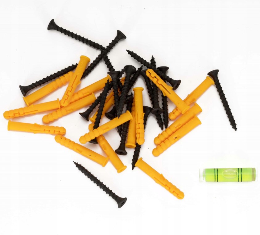 • Jednostavna montaža: svi potrebni vijci, tiple i mala libela uključeni