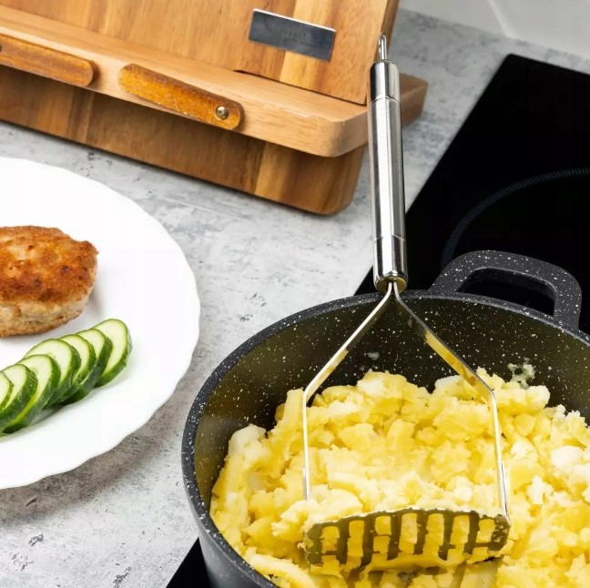 - Izdržljivost: Zahvaljujući čeliku, Gnječilica za Krumpir ne gubi oblik i ostaje pouzdana i nakon dugotrajne upotrebe.