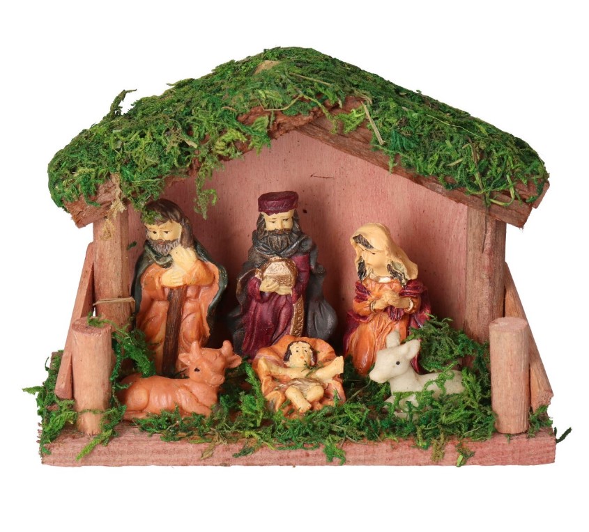- Šest detaljnih figurica – Marija, Josip, Maleni Isus i ostali likovi