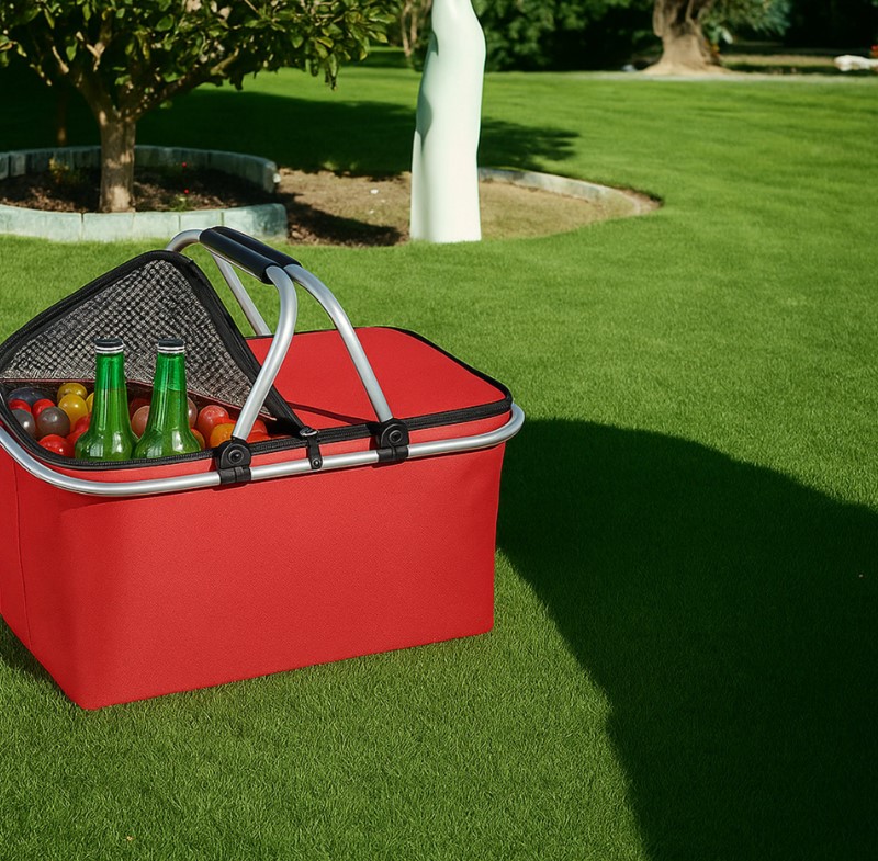 Opremljena aluminijskim okvirom i unutarnjim slojem termo aluminijske folije, Košara za Piknik učinkovito održava temperaturu hrane i pića — bilo da želite hladne napitke na plaži ili svježe voće tijekom planinarenja. 🥤🍉