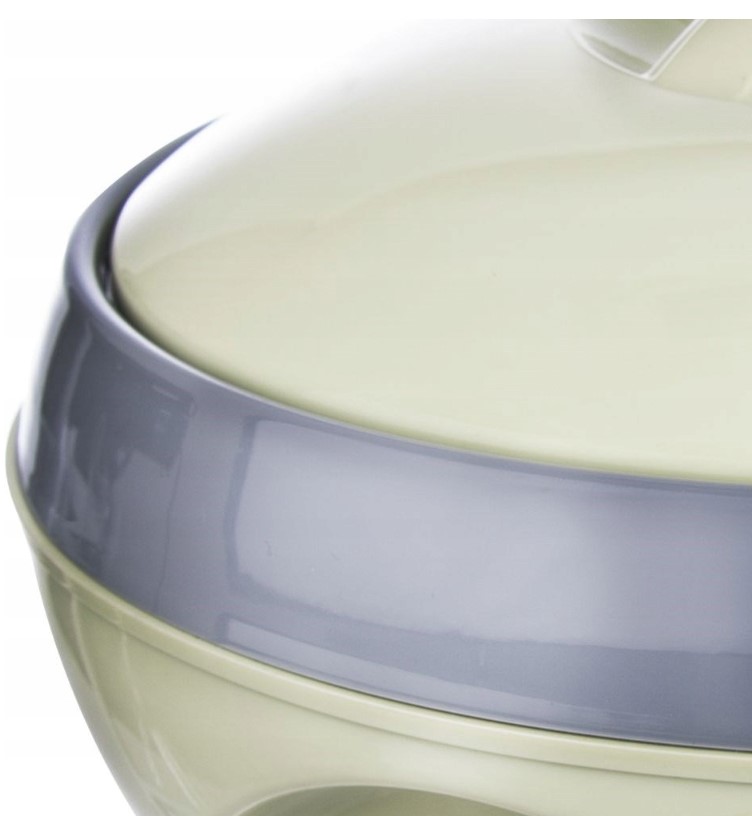 Vanjska strana posude izrađena je od kvalitetne plastike, dok je unutrašnjost od nehrđajućeg čelika. Ova kombinacija osigurava dugotrajnost i sigurnost prilikom upotrebe. - Termička funkcionalnost