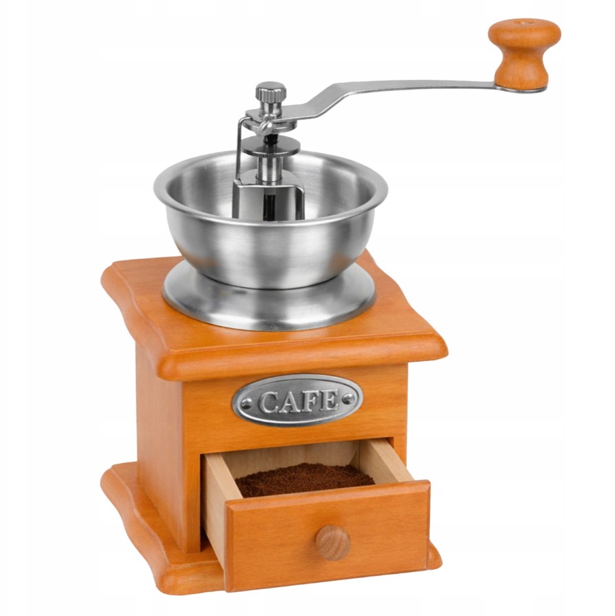 ✔ izrađen od prirodnog drva i keramike ✔ rotirajuća metalna ručka ✔ praktična ladica za mljevenu kavu ✔ pogodan za kavu i začine ✔ dekorativan vintage dizajn ✔ dugotrajna i čvrsta konstrukcija