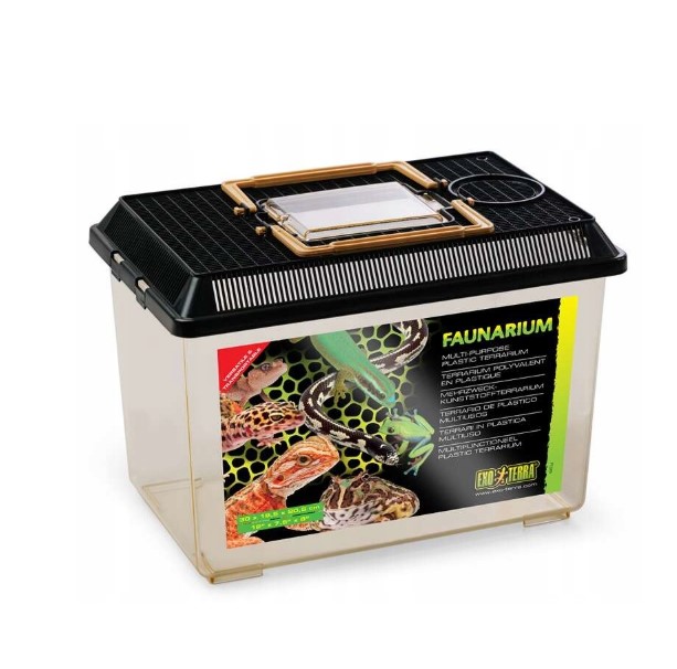 Staklena posuda za terarij EXO TERRA je idealna za transport, uzgoj i hranjenje gmazova, vodozemaca, pauka, insekata i drugih malih životinja poput glodavaca. Zahvaljujući svojoj funkcionalnosti i kvalitetnoj izradi, ova posuda pruža sigurno i higijensko okruženje za vaše ljubimce, bilo da se koristi kao privremeni smještaj, karantenska jedinica ili stalni terarij.