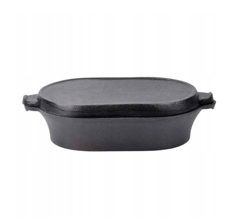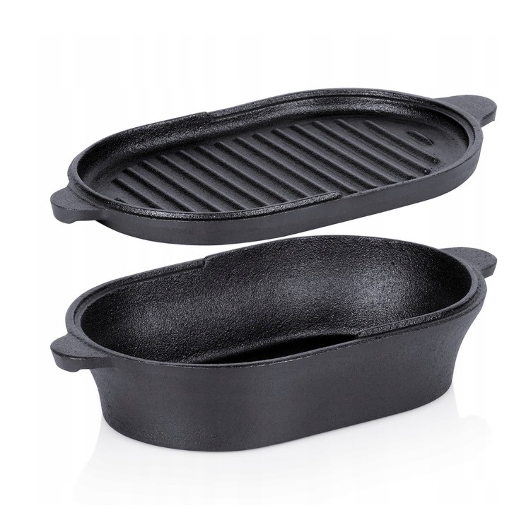 Tepsija za Ribu iz Pećnice Brittany 2u1 izrađena je u potpunosti od livenog željeza i dolazi s poklopcem koji se koristi kao zasebna grill tava. Ovaj svestrani set omogućuje pečenje, pirjanje, prženje i posluživanje direktno na stol, a zbog vrhunske termalne stabilnosti idealan je za pripremu ribe, mesa, povrća i jela iz pećnice. Ako tražite pouzdan komad posuđa koji traje godinama, ova Tepsija za Ribu iz Pećnice je pravi izbor.