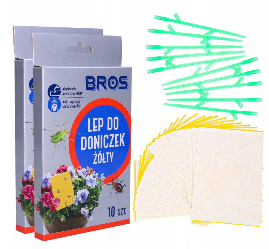 Žute ploče za insekte BROS predstavljaju jednostavno, učinkovito i ekološki prihvatljivo rješenje za suzbijanje štetnika koji se hrane sobnim i ukrasnim biljkama. Zahvaljujući intenzivnoj žutoj boji, ove ljepljive ploče privlače leteće insekte poput lisnih uši, bijelih mušica, tripsa i drugih štetnika, koji se zatim zalijepe za površinu i bivaju trajno uklonjeni iz vašeg prostora.